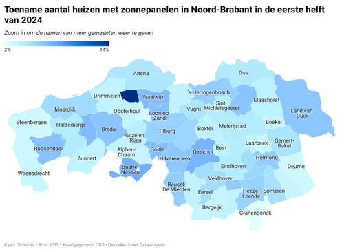 woningen met zonnepanelen steeg in Geertruidenberg met ruim 13 procent, terwijl